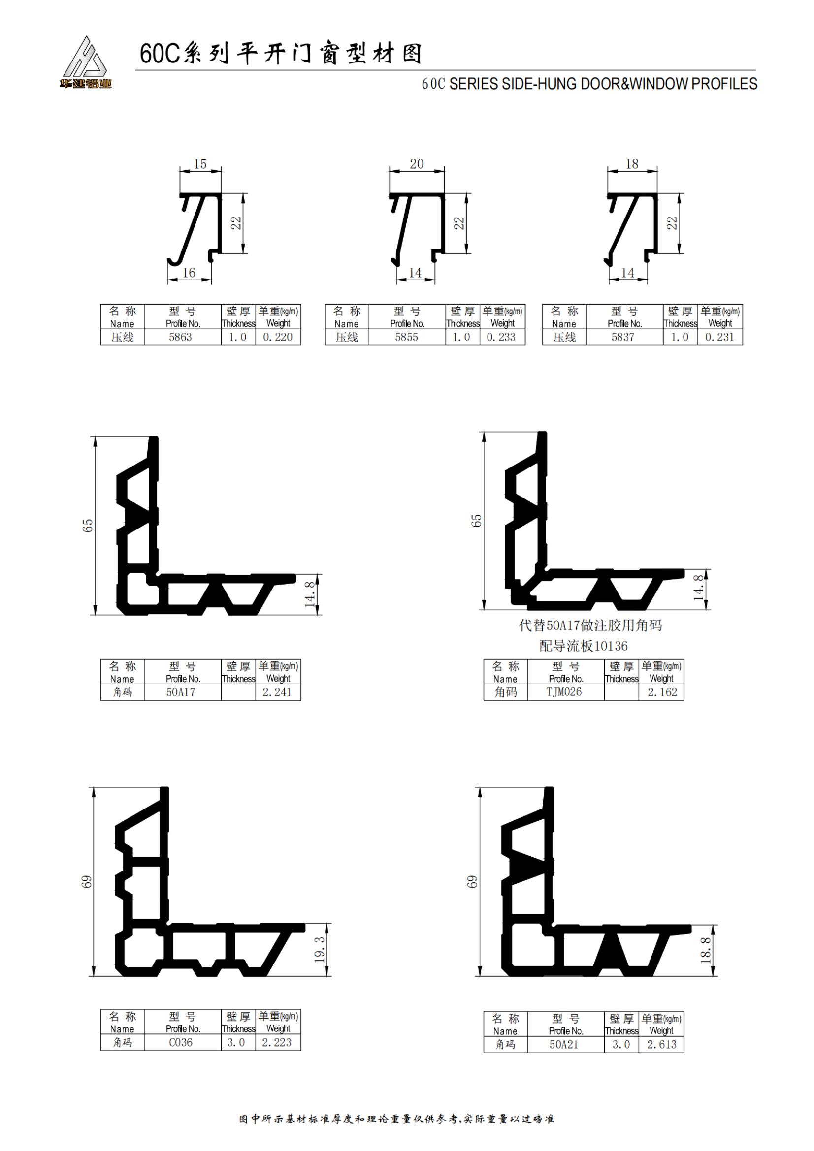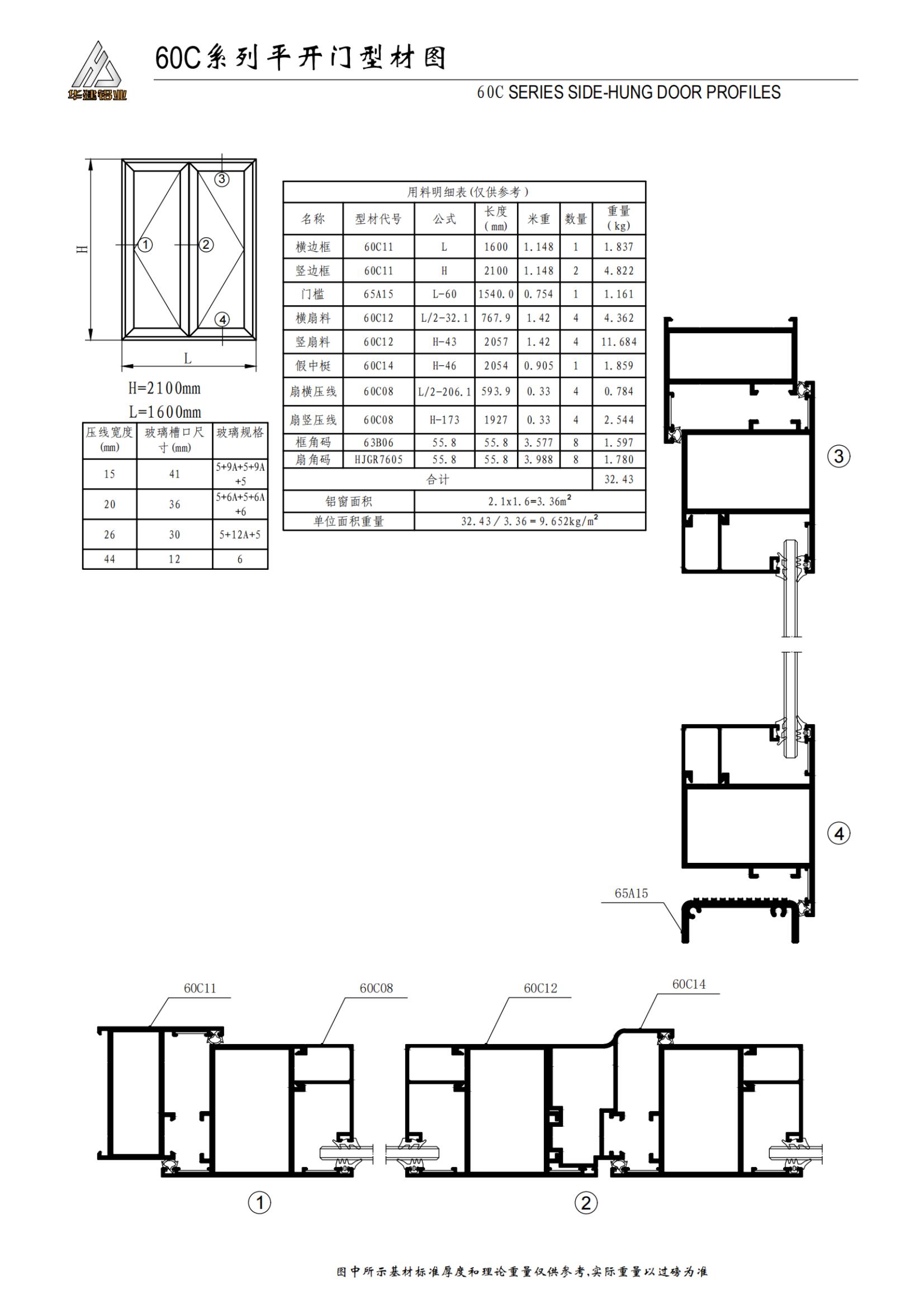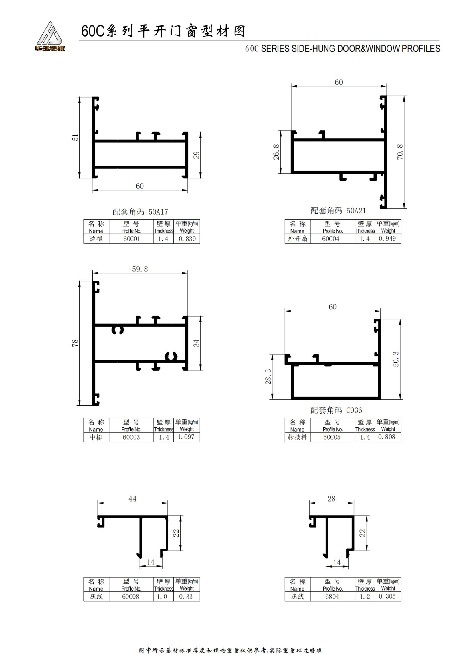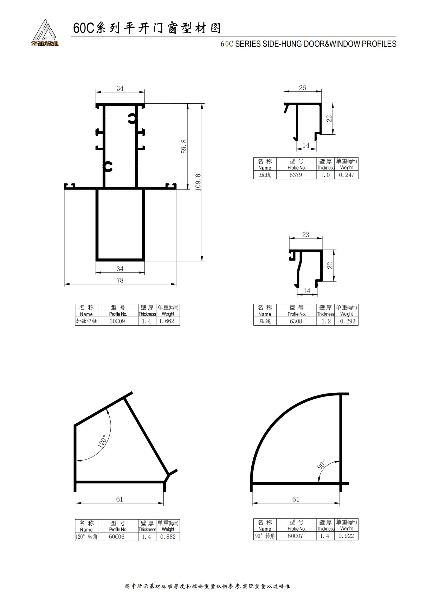 سلسلة 60C الأبواب والنوافذ المتأرجحة