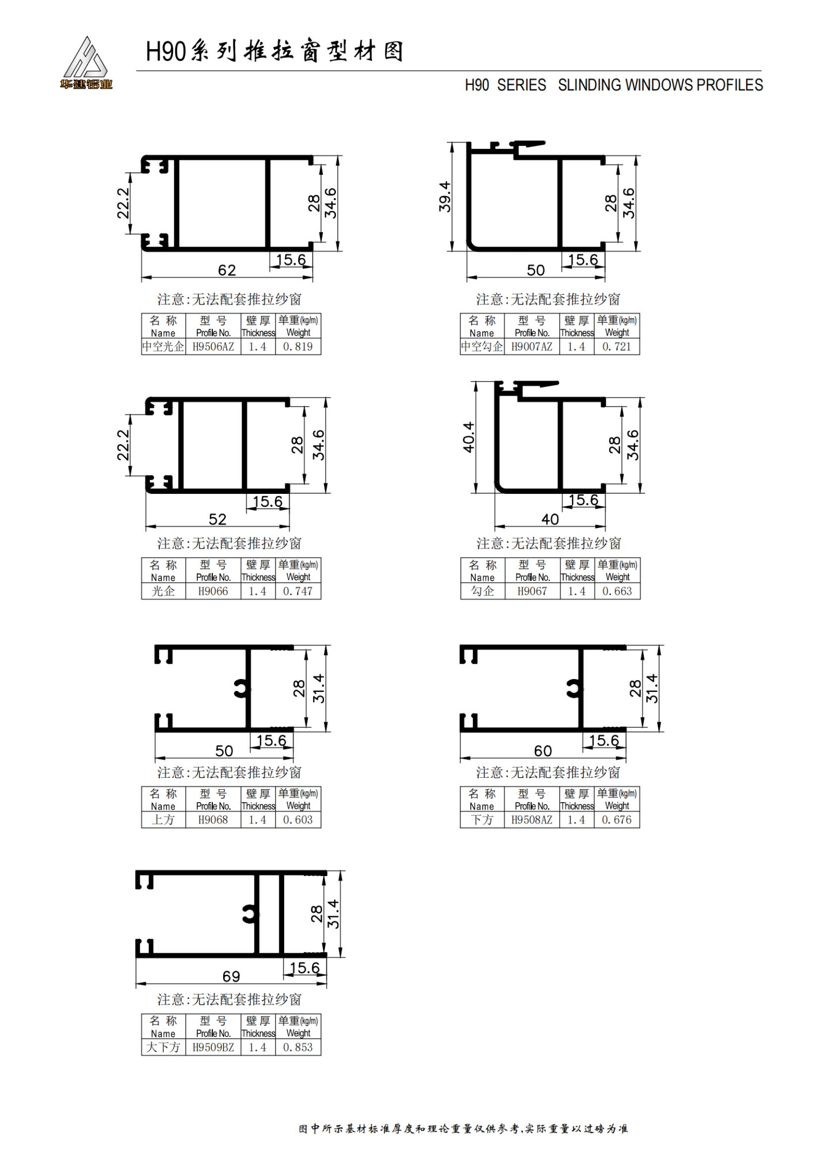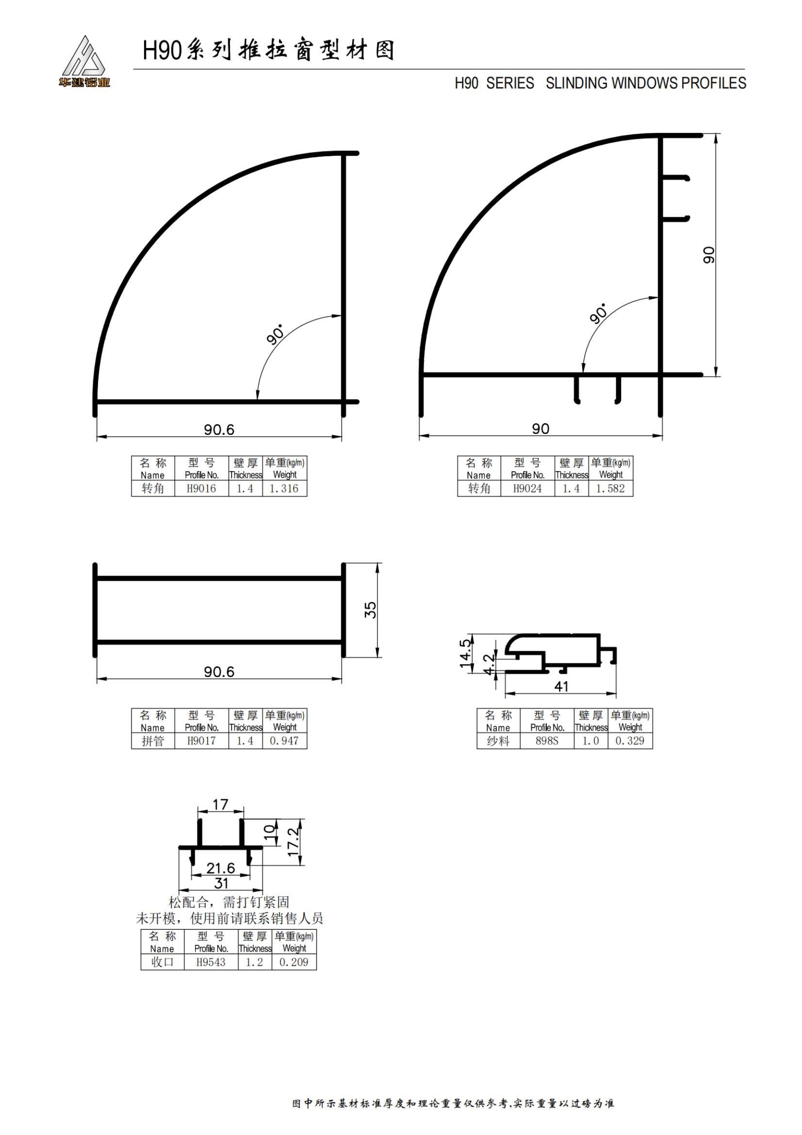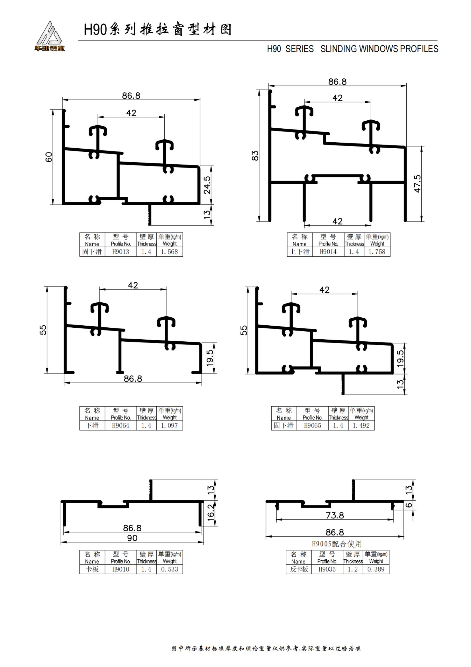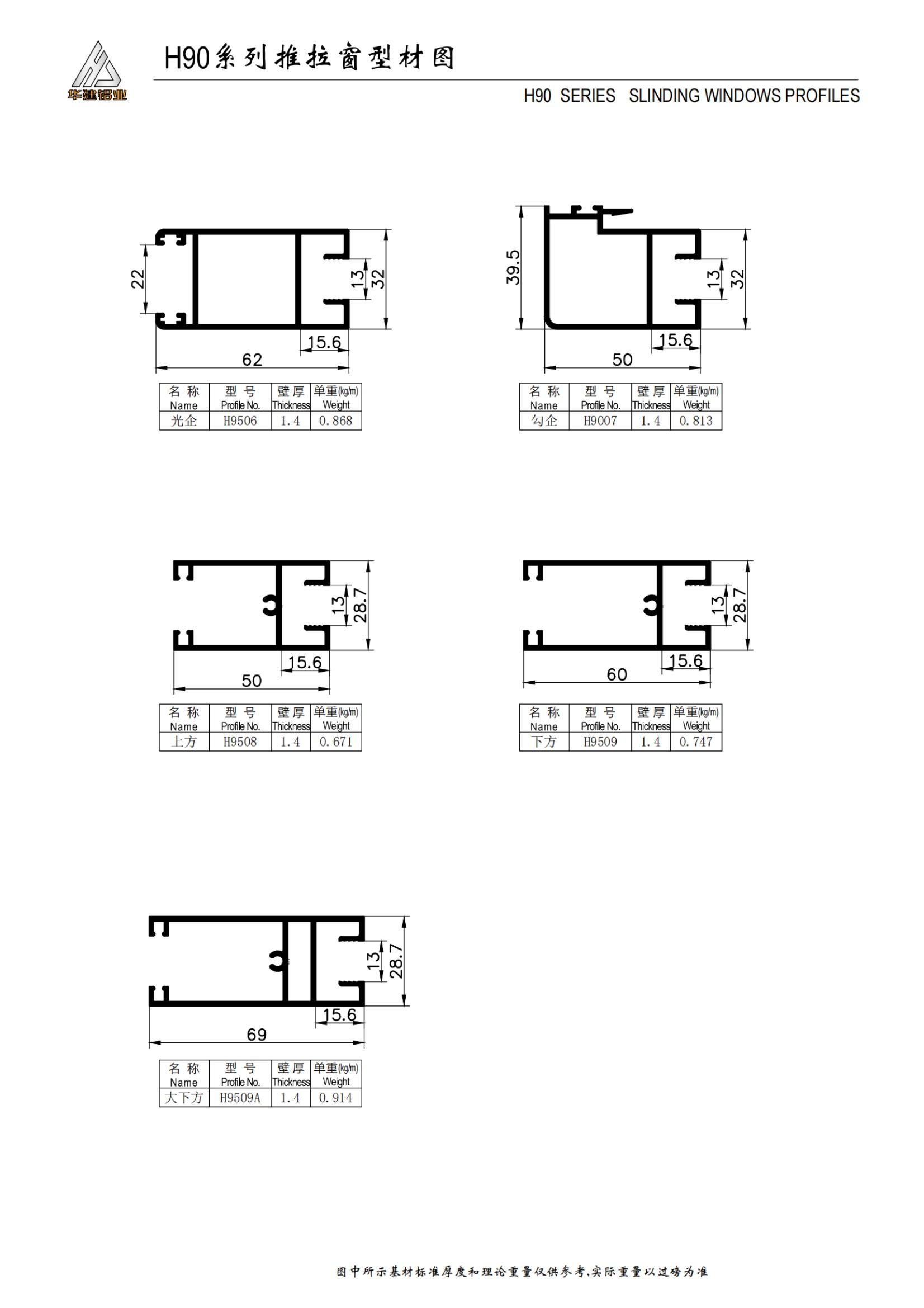 سلسلة H90 الأبواب والنوافذ المنزلقة
