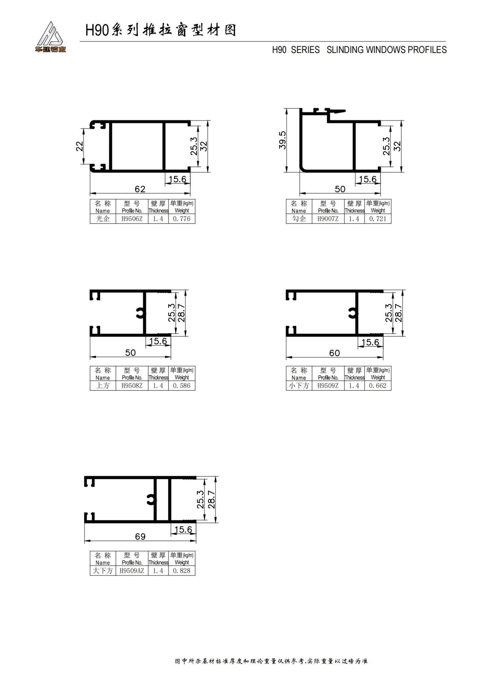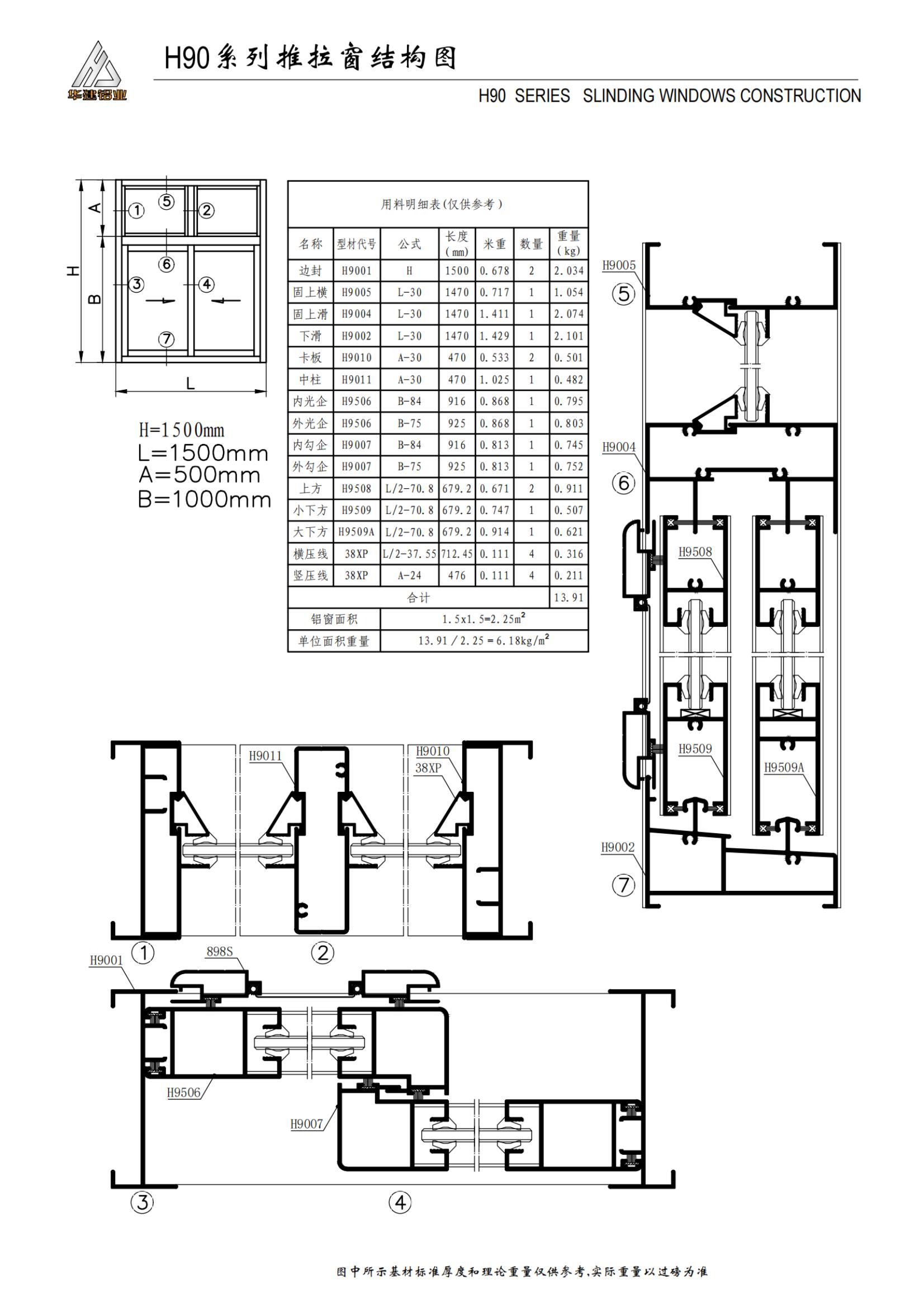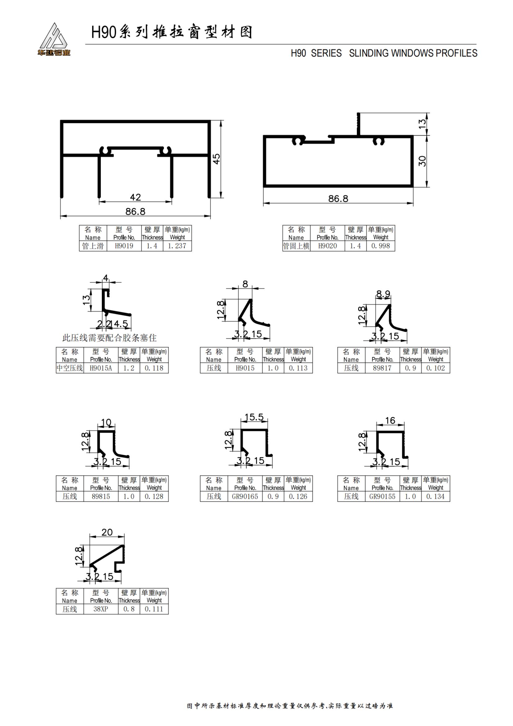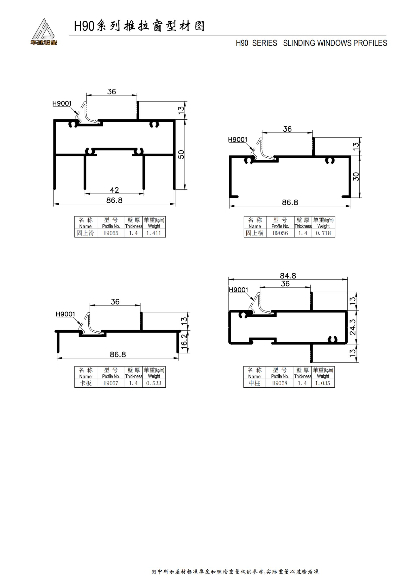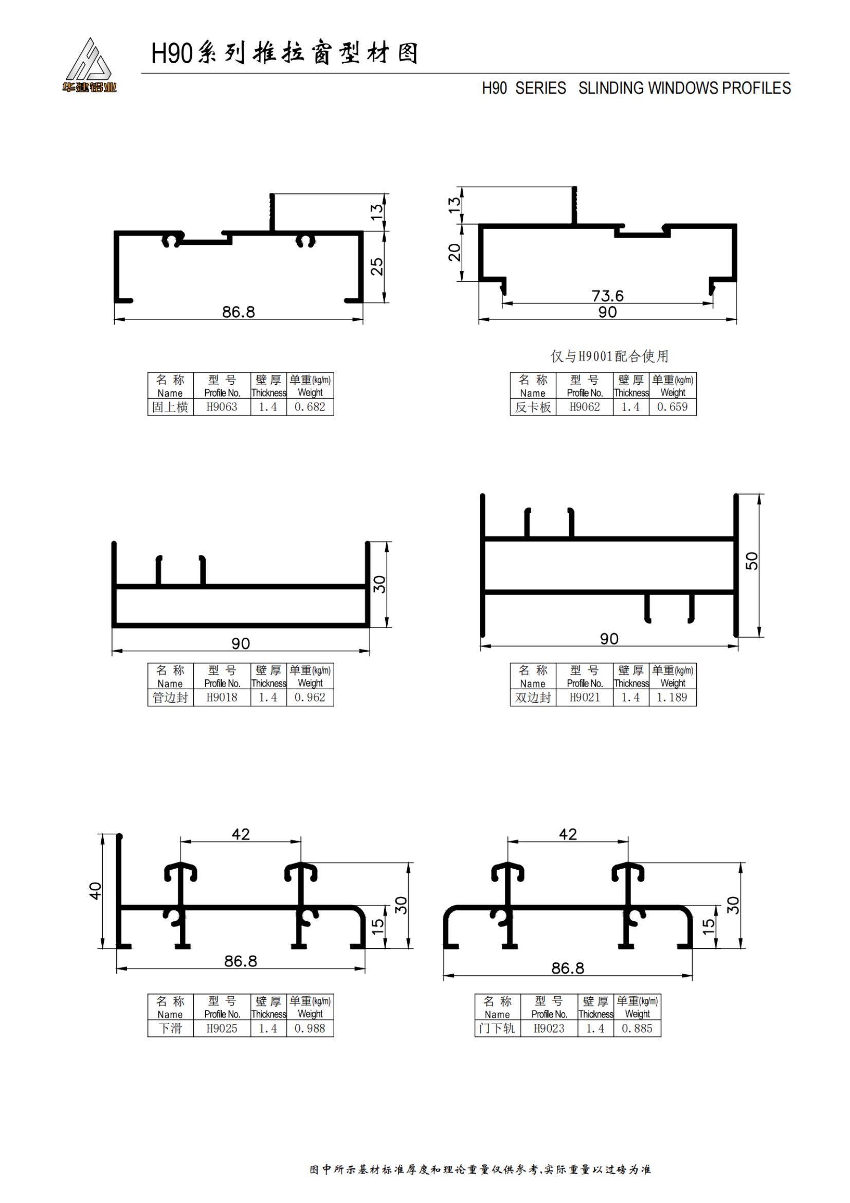 سلسلة H90 الأبواب والنوافذ المنزلقة