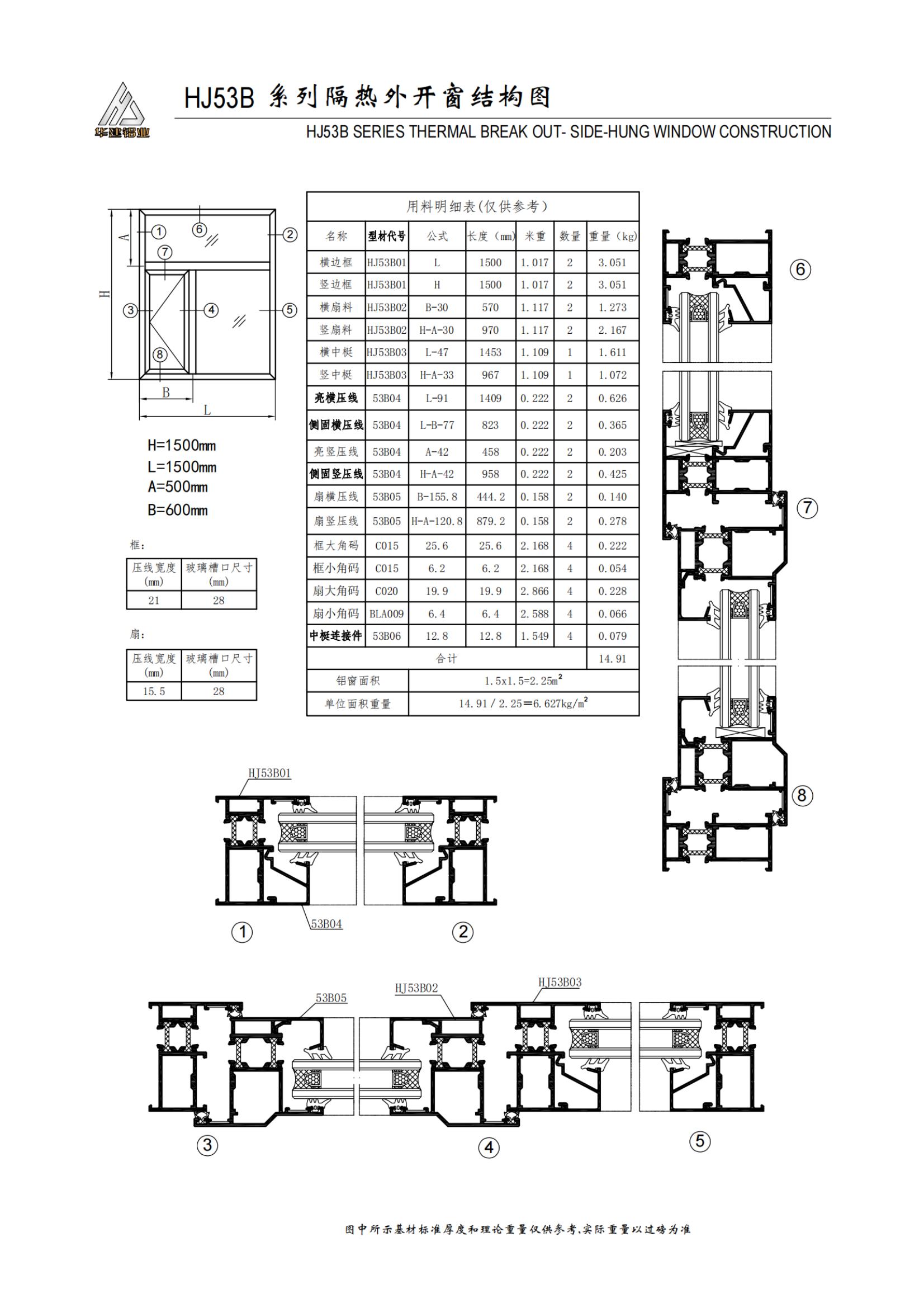 سلسلة HJ53B نوافذ فتحة مغطاة عازلة
