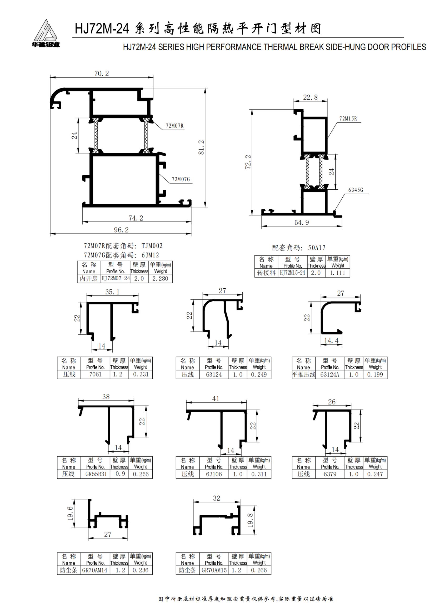 سلسلة HJ72M-24 عالية الأداء معزولة بطلس الباب المتأرجح
