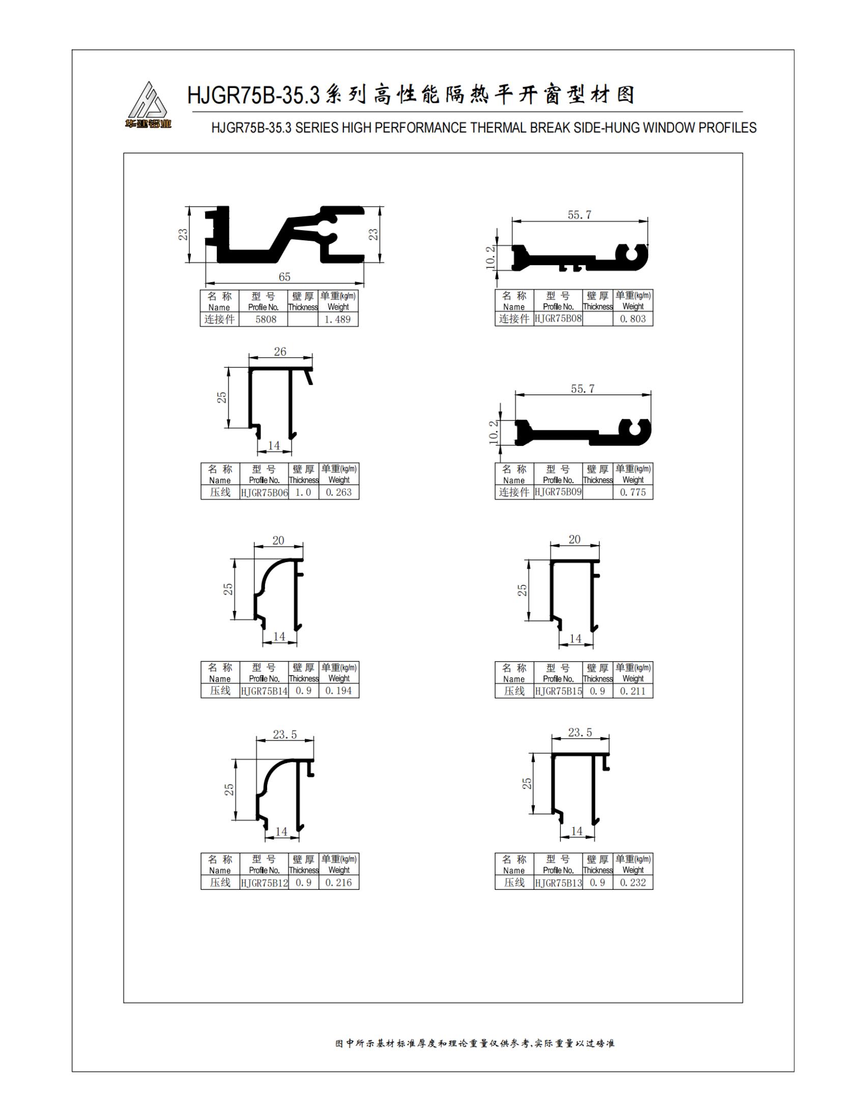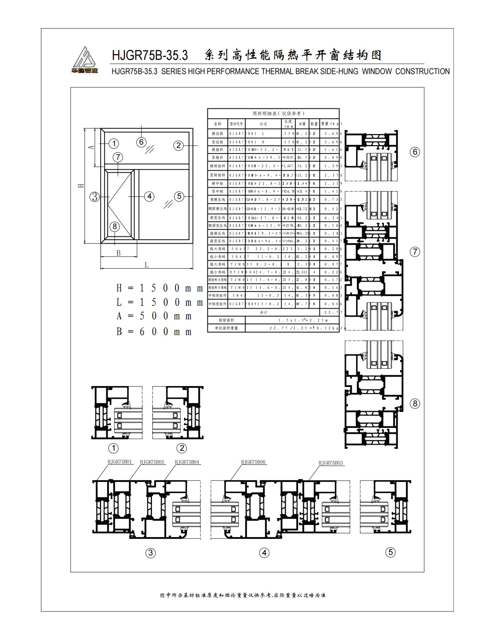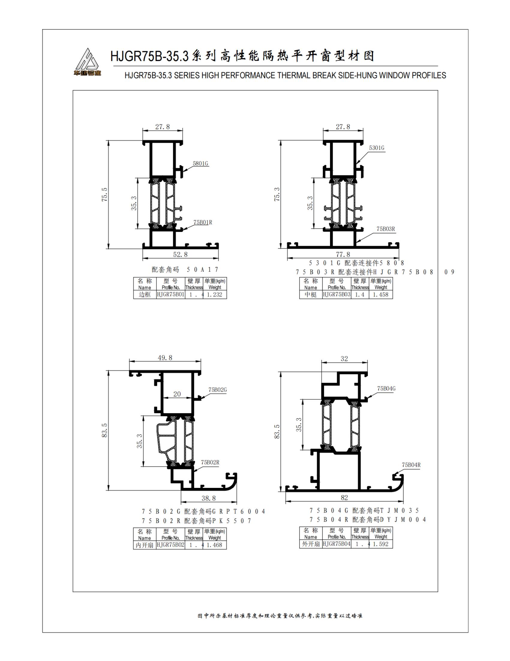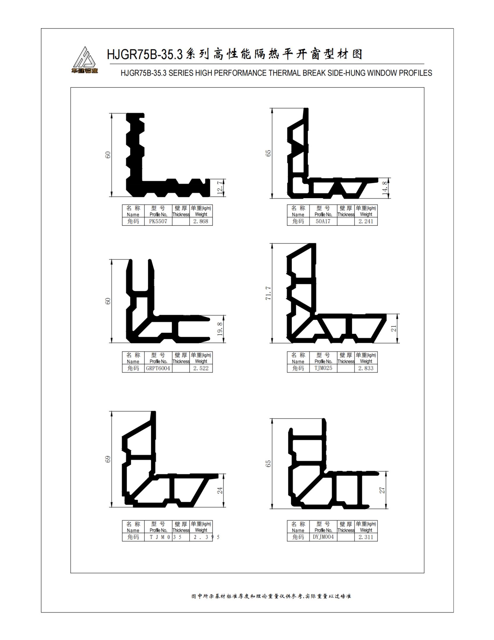 سلسلة HJGR75B عالية الأداء معزولة نافذة المخطط