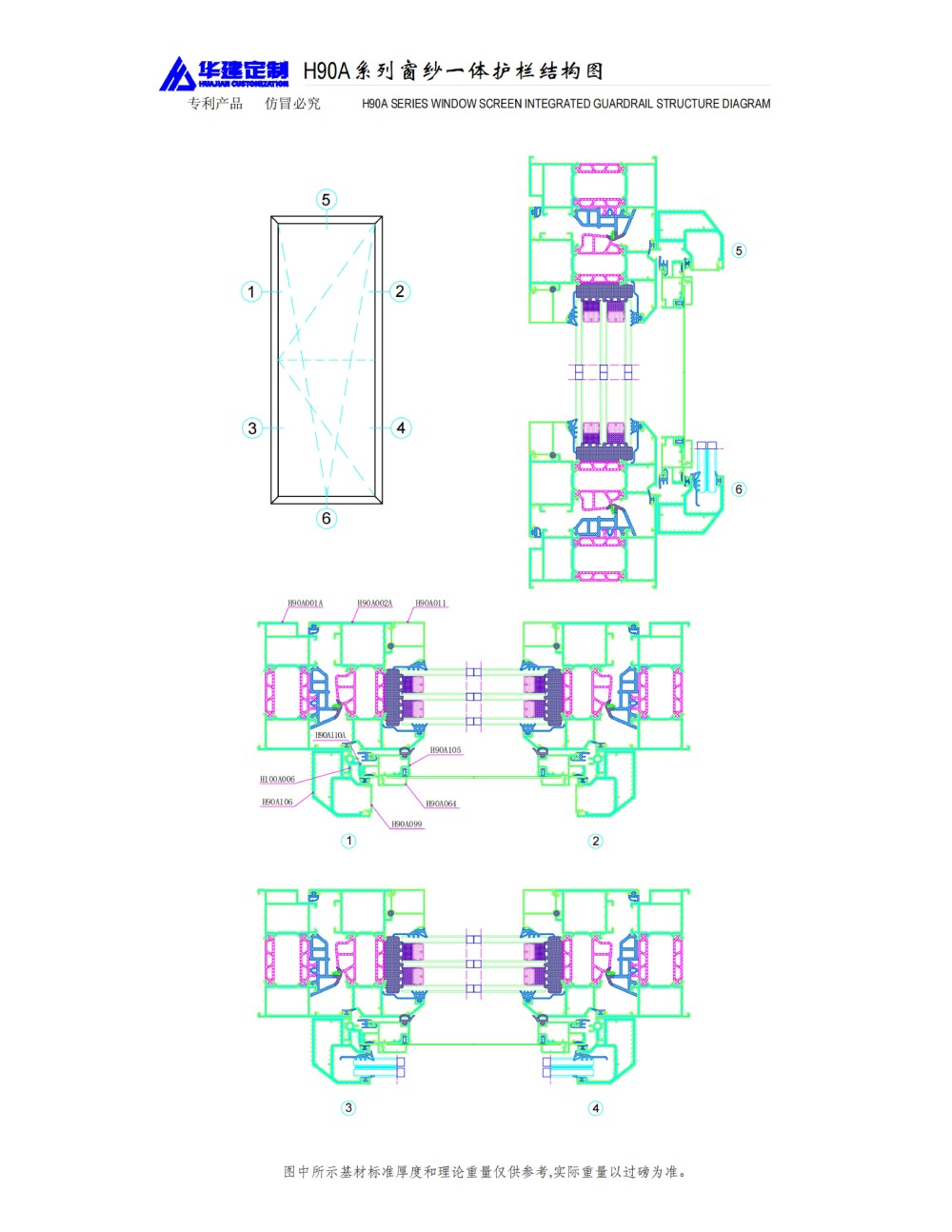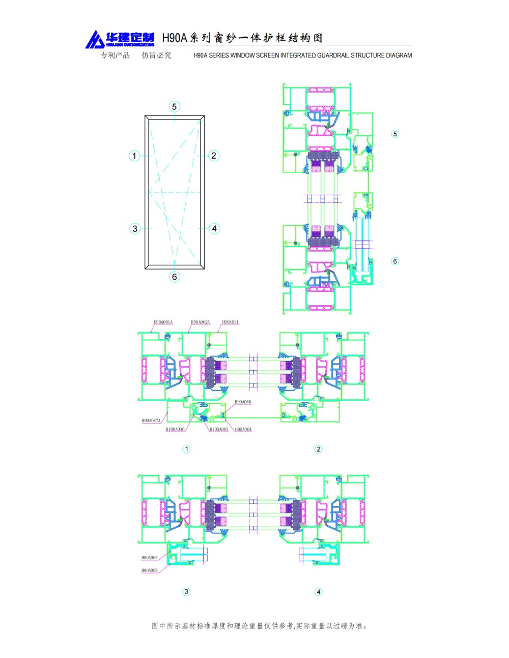 تخصيص هواجيان - سلسلة H90A لشاشة النافذة الداخلية مع حاجز حماية مدمج